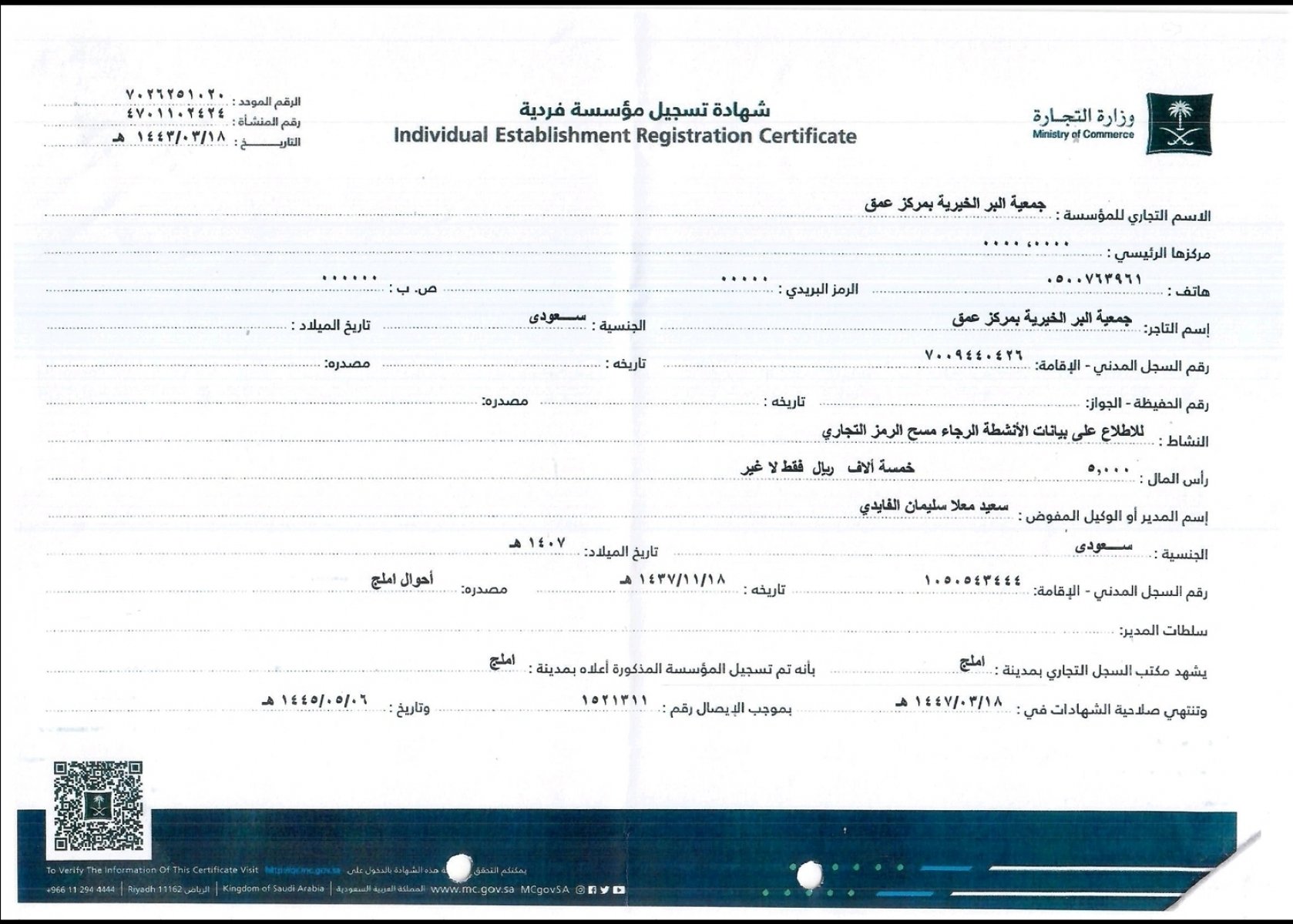 ترخيص الجمعية رقم ٧٩٩ من المركز الوطني لتنمية القطاع غير الربحي